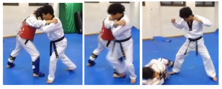 FIGURE 3: Application from Keumgang [Lee, “실전태권도…”: 0:27-0:29].